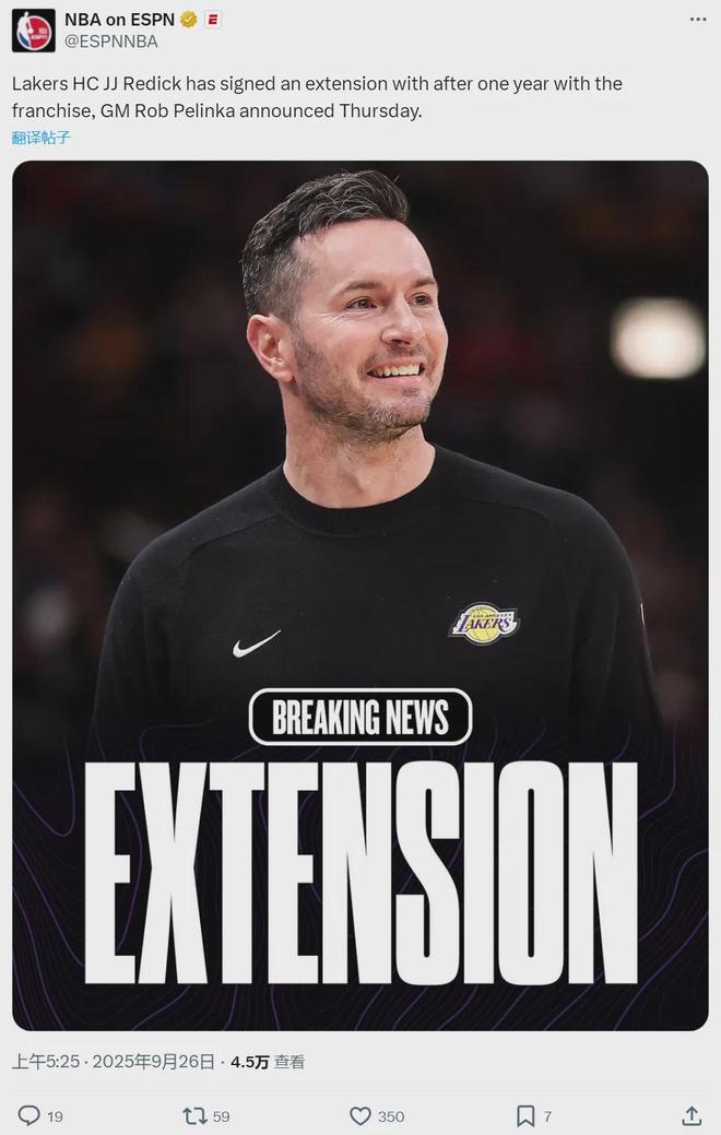 “湖人希望通過續(xù)約雷迪克主教練來傳遞管理層的立場。我們認為雷迪克是一位擁有獨特執(zhí)教理念的杰出主教練,他的思想體系將推動湖人去塑造一個卓越的球隊文化?!?/p>
