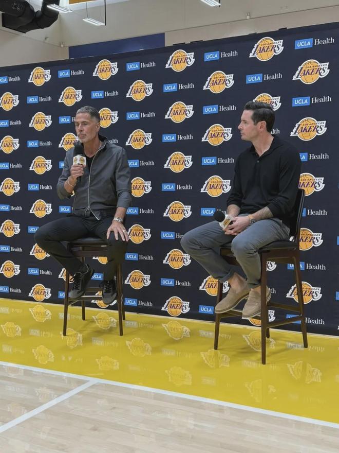 這個新聞發(fā)布會并非媒體日活動,因此沒有球員參加,出席的就是湖人總經(jīng)理佩林卡和主教練雷迪克。