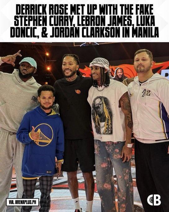 直播吧9月19日訊 據(jù)美媒Court Buzz報道,前NBA球星德里克-羅斯在菲律賓馬尼拉與詹姆斯、庫里、喬丹-克拉克森和東契奇的模仿者拍了合照。羅斯此行是為了參加在菲律賓的一個籃